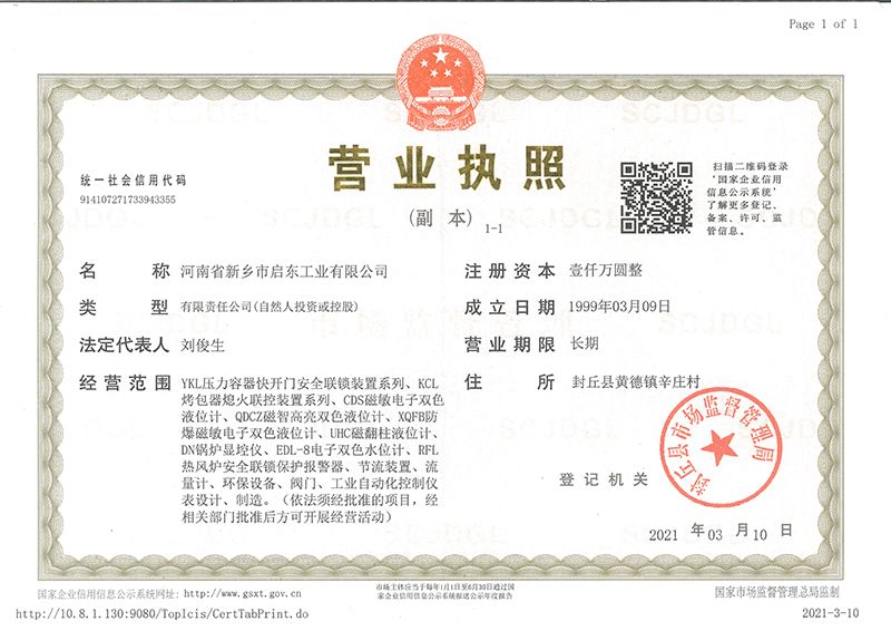 河南省新鄉市啟東工業有限公司始建于1987年,是專注研發、生產自動化儀器儀表(主要與壓力容器、鍋爐等容器配套使用)的廠家。主要產品有液位計(磁敏雙色型、磁翻柱型等)系列、烤包器熄火聯控裝置系列、壓力容器快開門安全聯鎖保護裝置系列、鍋爐報警器系列。二十多年來,公司產品暢銷國內并遠銷俄羅斯、蒙古與東南亞,深得廣大用戶的信賴和好評。我們多年來致力于自動化儀器儀表的研制生產,公司現具有完善的生產、試驗、檢測手段和設備。科技創新、誠信服務,是我們不變的經營理念,我們將以強有力的技術支持及售后竭誠為客戶提供良好的服務。  2012年我公司成功研發了KCL系列烤包器熄火聯控裝置,并于2013年2月2日榮獲中華人民共和國國家知識產權局辦法的《實用新型**證書》<**號:2021202257735>該產品廣泛應用于唐鋼等大型鋼鐵企業,為烤包器安全作業提供了有力的保障?! ?002年我公司成功研發磁敏電子雙色液位計獨特的高亮度LED紅綠雙色顯示,獲得了專家的首肯和用戶的一致好評。在此基礎上我公司研發人員十年磨一劍,致力于XQFB-1防爆型磁敏雙色液位計的研發,于2013年12月27日由國家防爆電器產品質量監督檢驗中心檢驗合格并頒發防爆合格證書<編號:cnex19.0883>。該產品性能得到了充分的發揮,廣泛應用于含有Ⅱ類A·B級T1-T4組可燃氣體或蒸汽與空氣混合形成的爆炸性混合物的0區、1區危險場所。連接用戶DCS或PLC系統實現遠距離集中顯示和控制,從而實現節能、數字化管理。為用戶增加了一定的經濟效益和社會效益,。2014年公司成功申請了夢潤儀表的logo,新的品牌新的形象,夢潤儀表是啟東的LOGO, 歡迎新老用戶前來洽談合作?! ∥覀円蝗缂韧刈⒅乜蒲械耐度耄瑧{借產品的不斷更新、加大科技含量,進一步拓展市場。我們相信品質成就未來,以過硬質量、優惠價格、完善的售后服務熱忱歡迎廣大客戶來我司視察指導、洽談業務;精誠合作,共創輝煌!